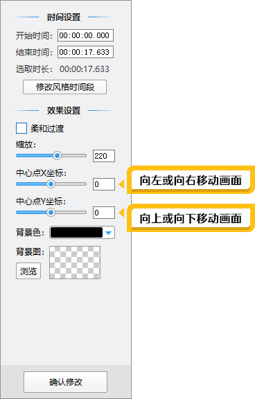 为了进一步精确选择你想要的画面区域,可以调整“中心点X坐标”和“中心点Y坐标”的滑块。这两个参数可以帮助你控制裁剪画面的中心点位置,确保裁剪后的画面仍然保持平衡和美观。