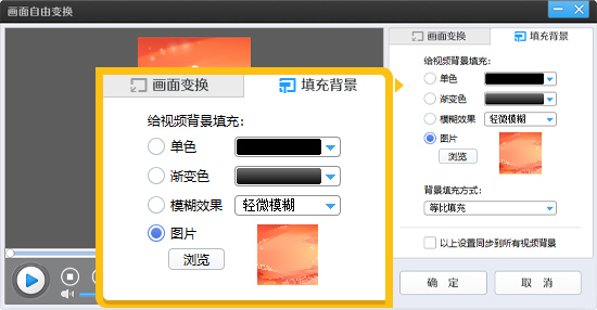 有时候,我们希望完整保留画面主体,不想进行裁剪。那么,爱剪辑的“画面自由变换”功能就能派上用场。点击主界面左下角的“画面自由变换”功能,在弹出框中,点击“填充背景”。在这里,我们可以给视频填充单色、渐变色,还可以选择填充背景图片或者添加模糊效果。爱剪辑内置了各种主题的背景图片,我们可以根据视频的风格自由应用,让视频更加美观。