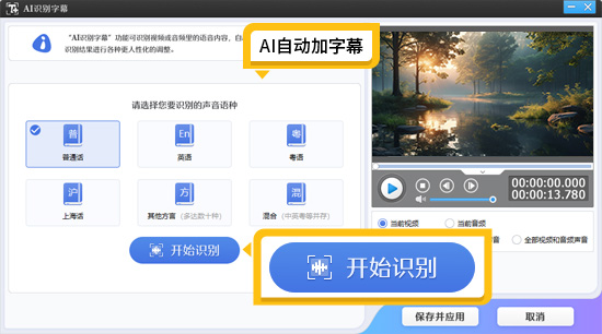 爱剪辑支持AI自动加字幕功能,能自动为视频和音频添加与人声同步的字幕效果,免去手工码字的繁琐,大大提高添加字幕的效率。